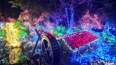 | The train's route is decorated with numerous lights |